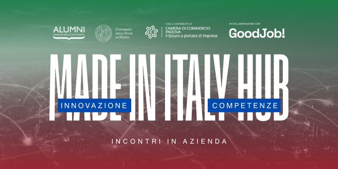 Made in Italy HUB è un ciclo di visite esclusive pensato per studenti/esse e neolaureati/e dell’Università di Padova, realizzato con il contributo della Camera di Commercio di Padova, nell’ambito del progetto “Innovazione e competenze per il Made in Italy“, e in collaborazione con GoodJob!